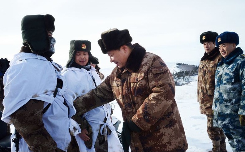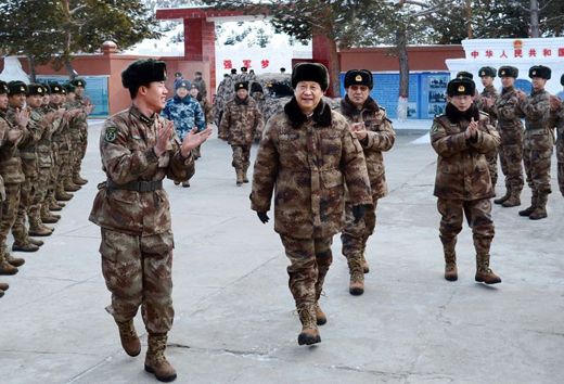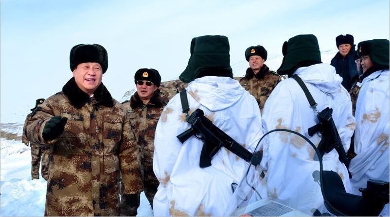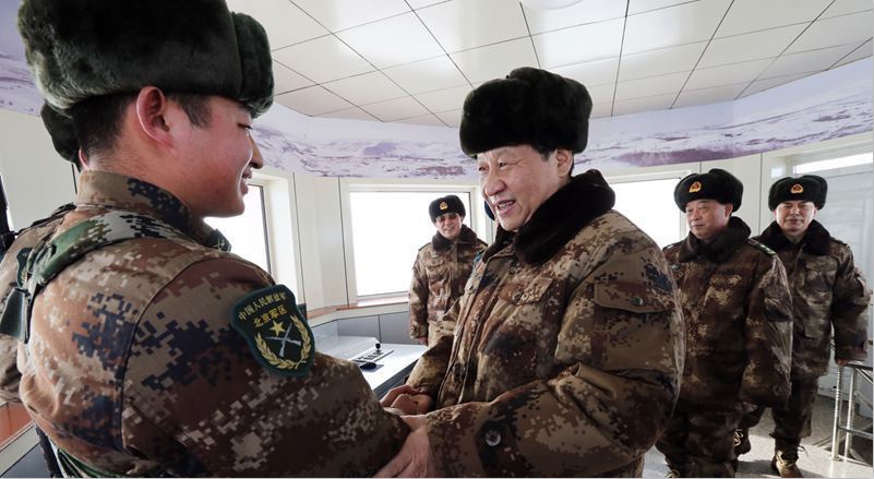 2014年1月26日,習(xí)近平主席冒嚴(yán)寒踏冰雪,專程來到邊防某部,親切看望慰問戍邊官兵,代表黨中央、國務(wù)院、中央軍委,向在祖國邊防堅守戰(zhàn)斗崗位的全體指戰(zhàn)員致以誠摯問候。